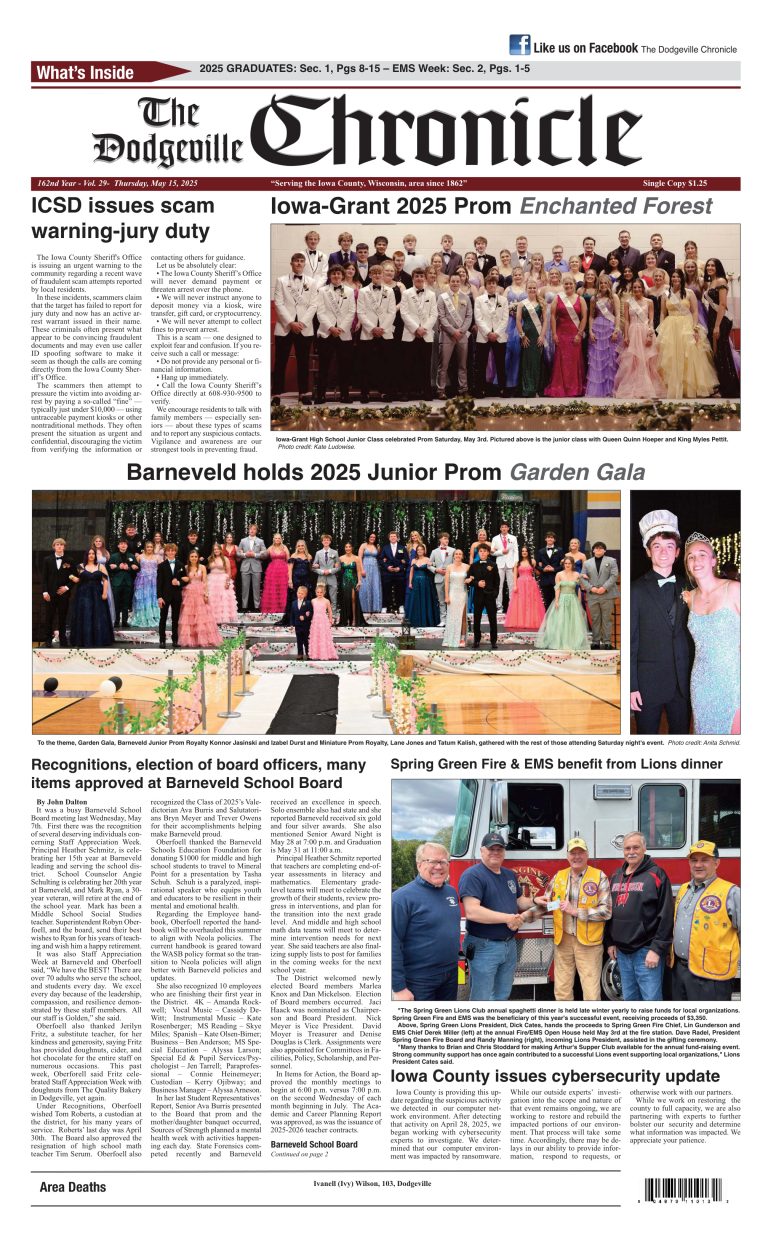 Dodgeville Chronicle — May 15, 2025
