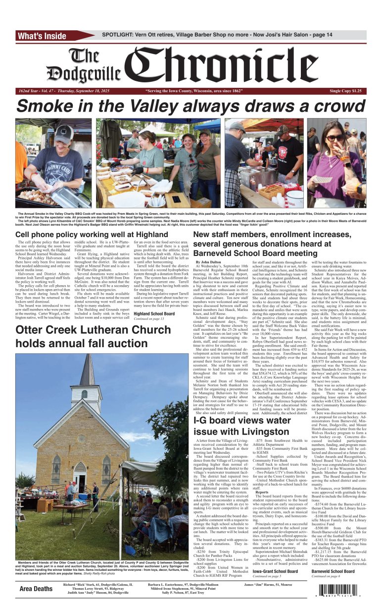 Dodgeville Chronicle — September 18, 2025