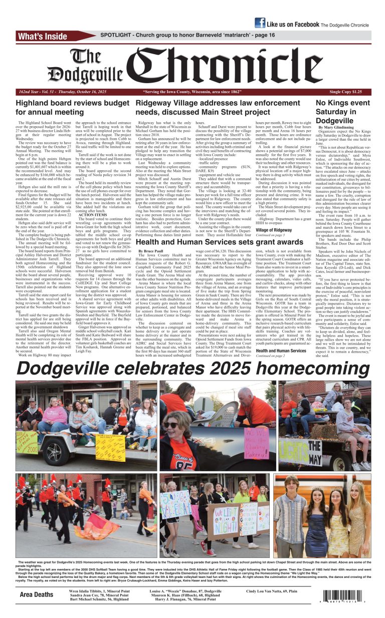 Dodgeville Chronicle — October 16, 2025