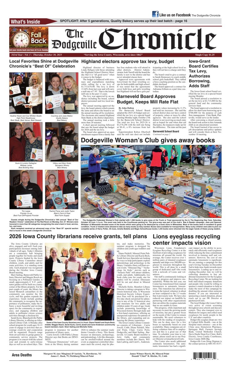 Dodgeville Chronicle — October 30, 2025