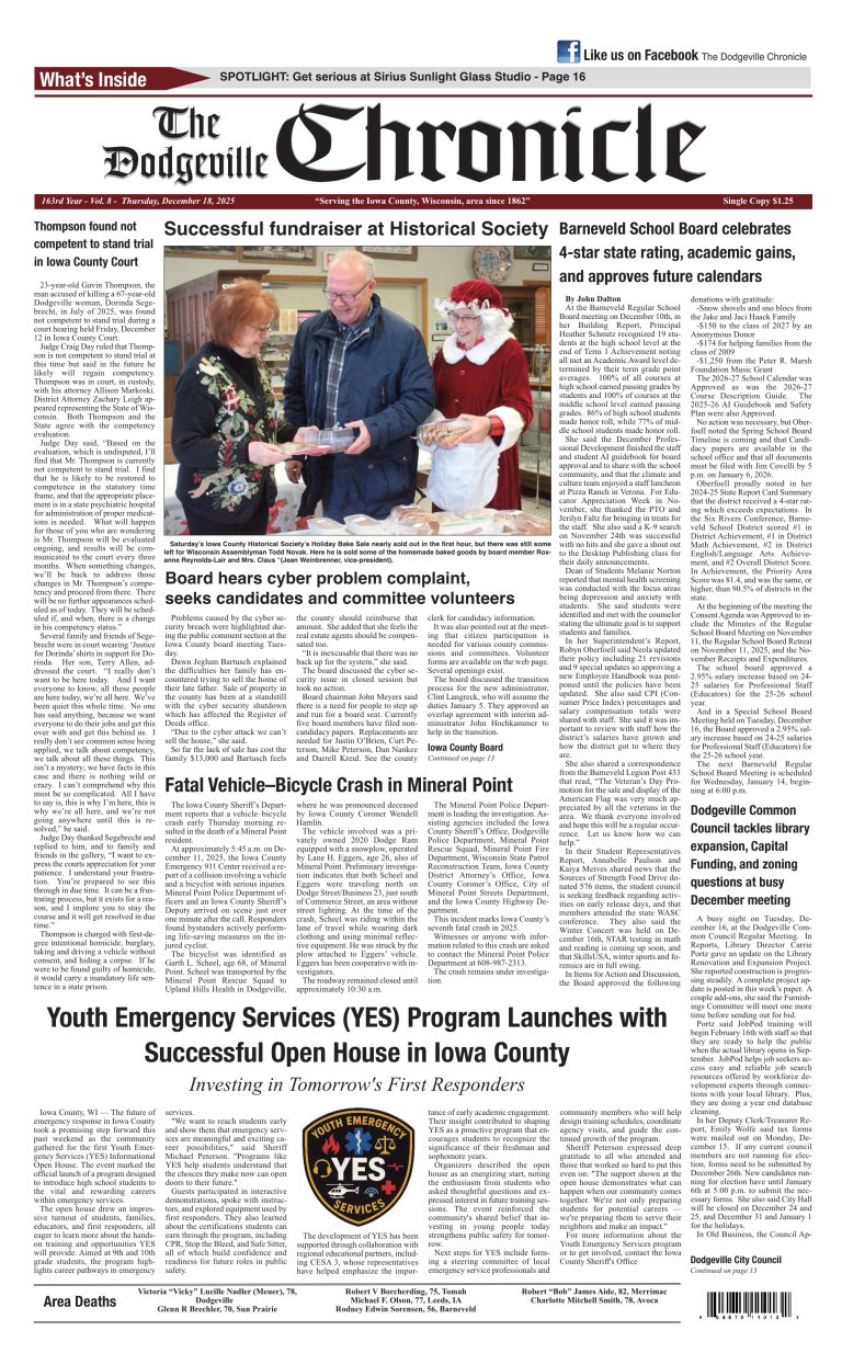 Dodgeville Chronicle — December 18, 2025