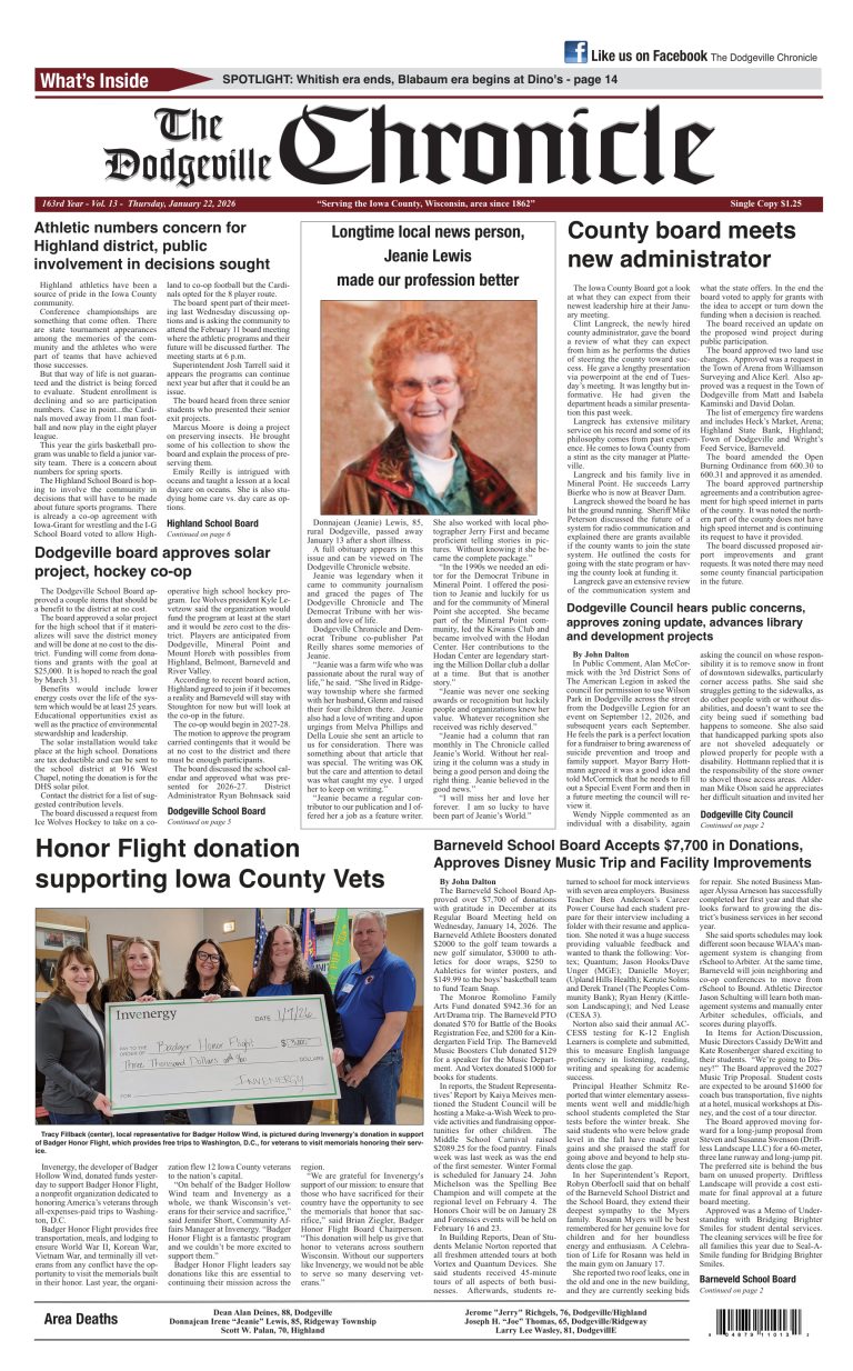 Dodgeville Chronicle — January 22, 2026
