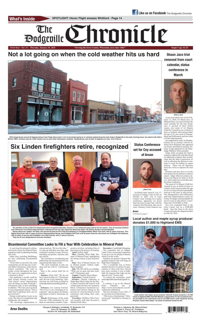 Dodgeville Chronicle — January 15, 2026