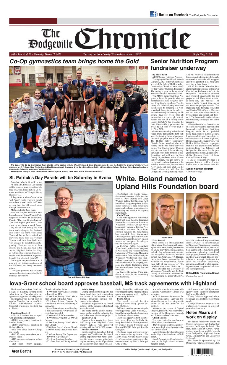 Dodgeville Chronicle — March 12, 2026