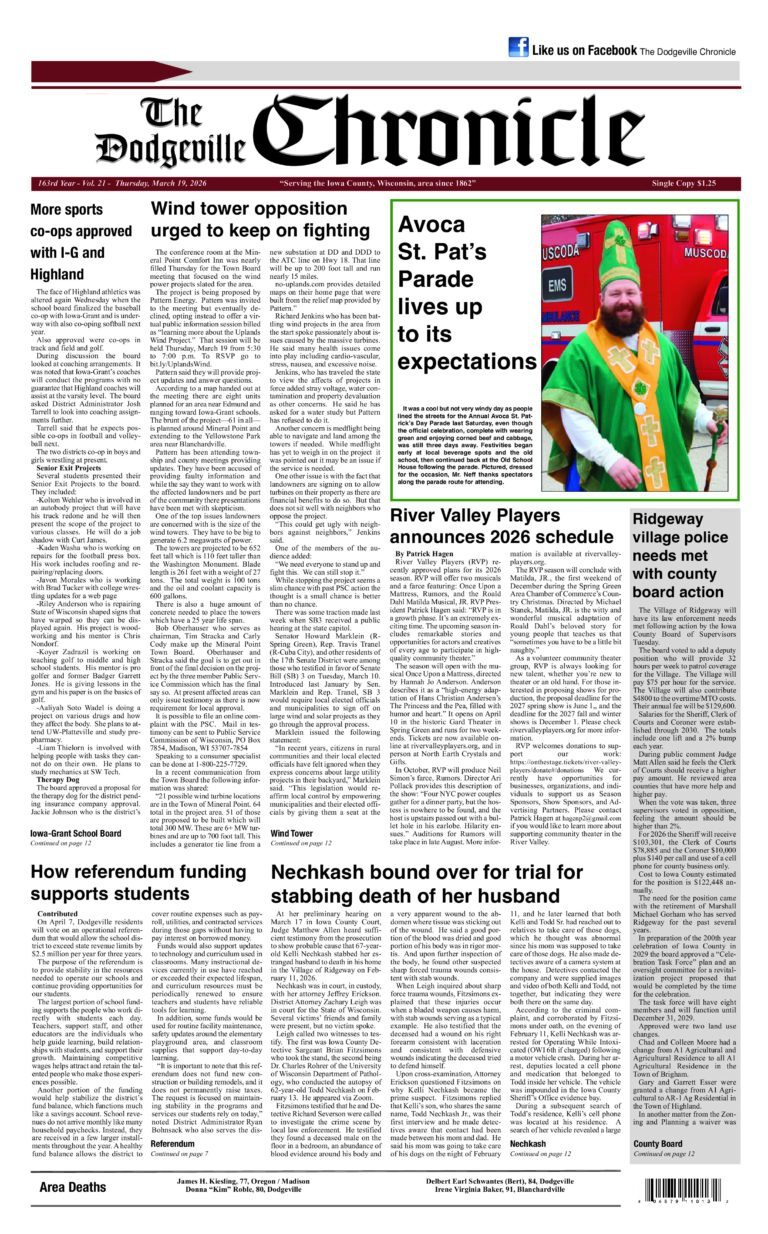 Dodgeville Chronicle — March 19, 2026
