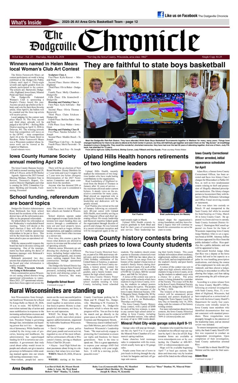 Dodgeville Chronicle — March 26, 2026