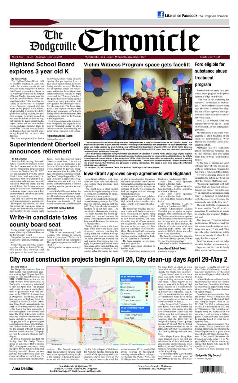 Dodgeville Chronicle — April 16, 2026
