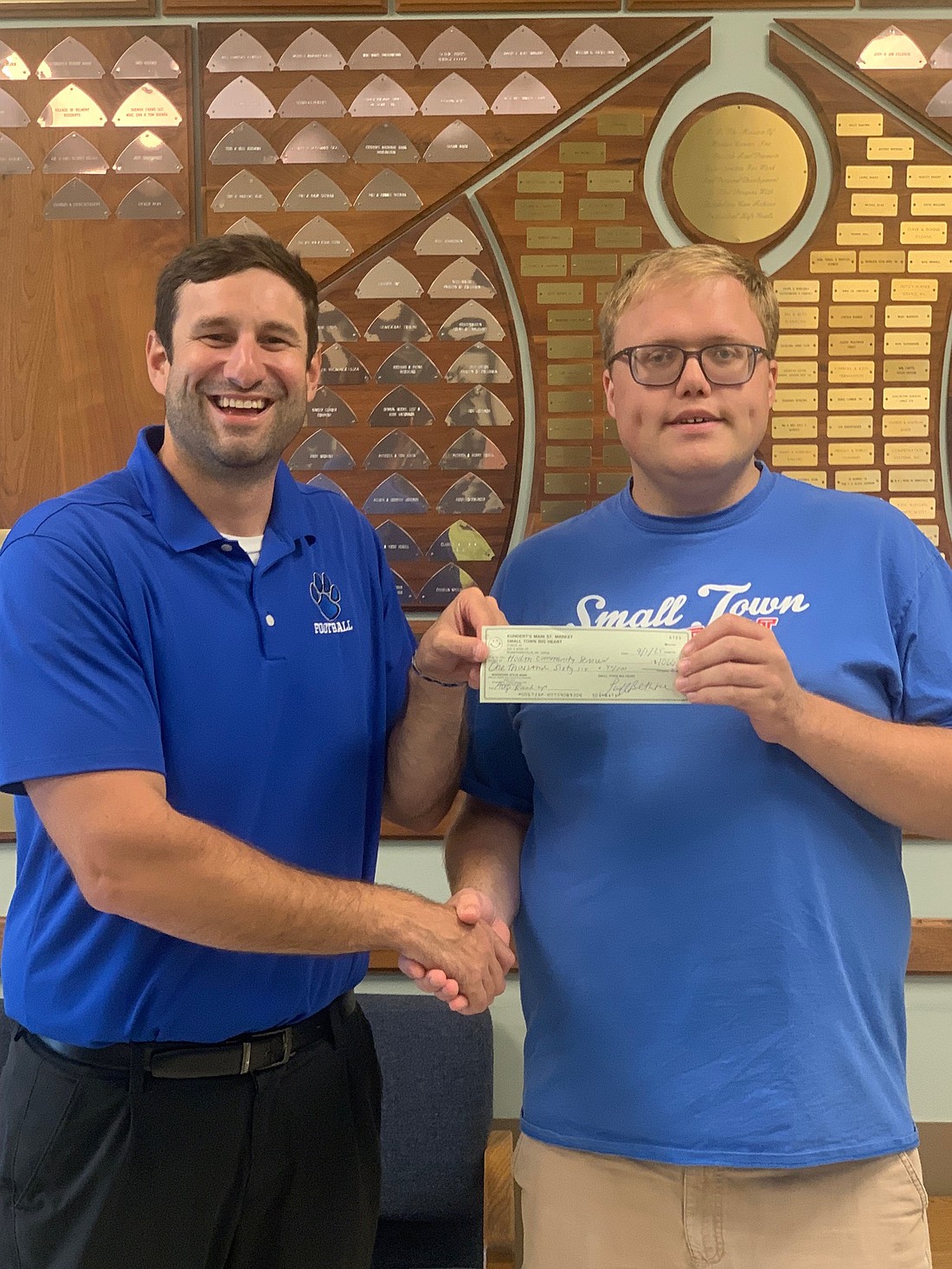 Every month Kundert's Main Street Market in Blanchardville has been asking those who shop there to 'round-up' their grocery totals in order to donate those extra cents to local organizations and non-profits. For the month of August, the round-up was designated to Hodan Community Services, Inc., in Mineral Point. Benjamin Meyer, Blanchardville resident and an employee at Kundert's and Hodan, delivered a check to Chris Mitchell, Executive Director of Hodan Community Services, Inc. for $1,066.40 on Friday, Sept. 12. The September round-up has been designated to the Blanchardville/Pecatonica HS Alumni Association. They have an ongoing list of round-up ideas. If you’d like to make a suggestion, reach out on their Facebook page or contact Tiffany Bethke.