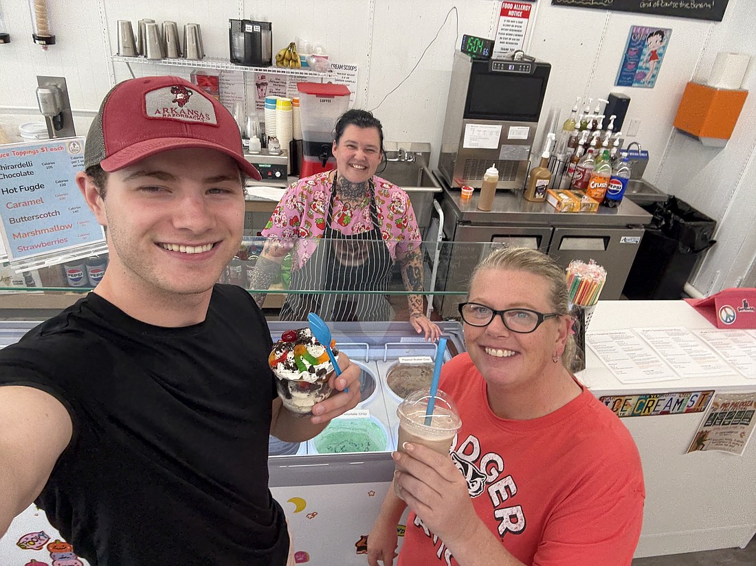 Above, two of the Dodgeville Chronicle employees stopped in for ice cream at Wyatt’s Sweet Treats the other day. Shown are Grant Roh and Heather Olson with their treats and Molly Abing serving them.